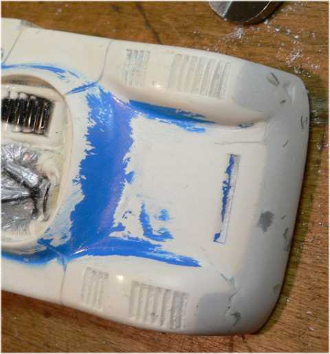 Aus Patex - Klebe - Knete wird ein neuer Heckabschluss modelliert. Ich entschied mich für eine gerade Abrißkante.