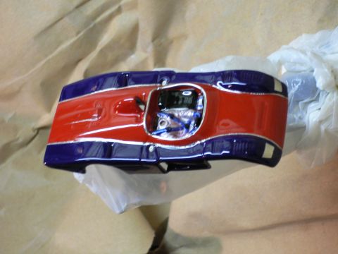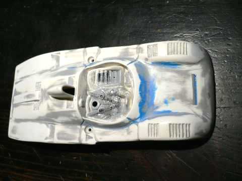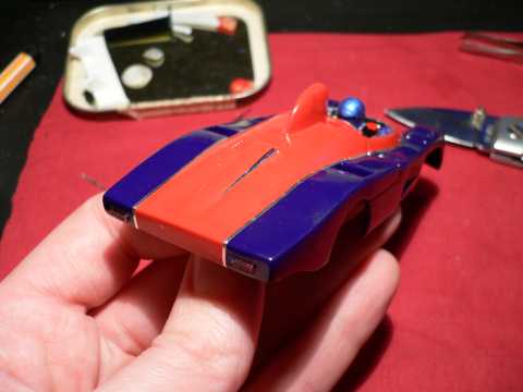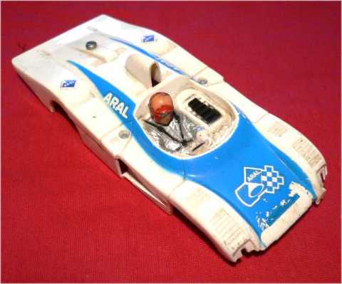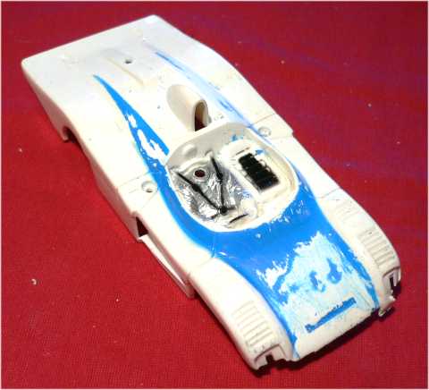 Karosserie ist nackt und mit warmem Wasser, Spüli und Zahnbürste gereinigt.Die Decals habe ich mit Lappen, Waschbenzin, Schleifpapier und Fingernägeln entfernt. Erste Entscheidung: Die Alpine wird nicht originalgerecht restauriert. Ihr Heck ist zum guten Fahren zu lang und / oder einen Tick zu breit. ich werde sie frei gestalten.