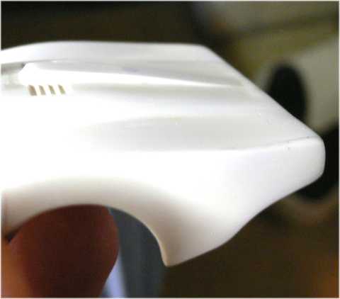 Schleife jetzt wieder an Heck und Schnauze weiter, bis die Konturen stimmen.Es bleiben ein paar Dellen und eine fühlbare Kante am Übergang zwischen Klebemasse und Plastik. Hinten sind auch noch Löcher geblieben, wo einst der Spoiler saß.