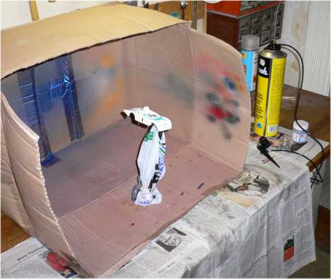 anderen Alpine tat. Vor dem Lackieren habe ich die Karosserie nochmal mit Waschbenzin abgewischt und dann halt von oben gespritzt. Wichtig natürlich, dass ich auch von unten / innen die Airbox mit einfärbte. Jetzt wird das Ganze erstmal ein paar Tage trocknen müssen. Pause 26.10.2004 14:21 Uhr