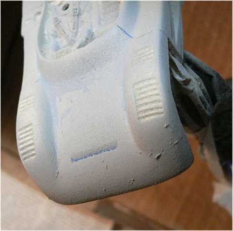 Das Heck habe ich mit heißem Wasser erwärmt. Die geschmeidiger gewordenen Seitenteile