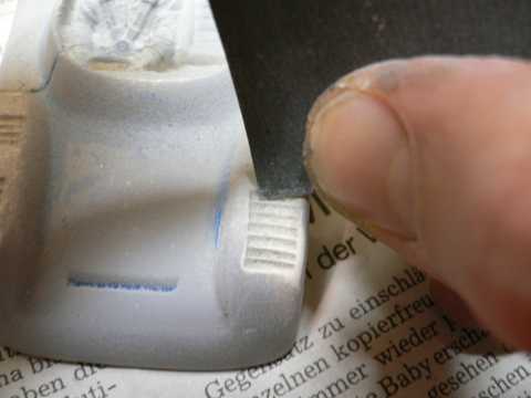 Unglaublich, wieviele Ritzen es gibt. Sie zu schleifen ist aber wichtig, damit der Wagen nachher nicht zu