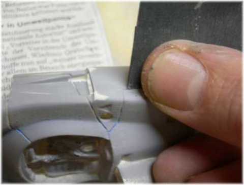Tuches angenommen. Mit feinem Schleifpapier glätte ich die Auflagestellen wieder.