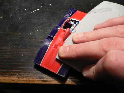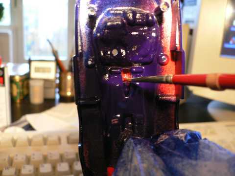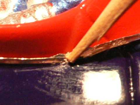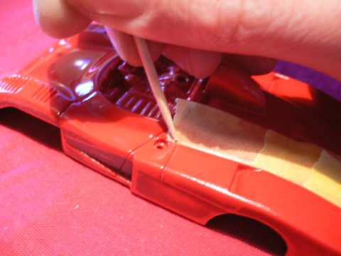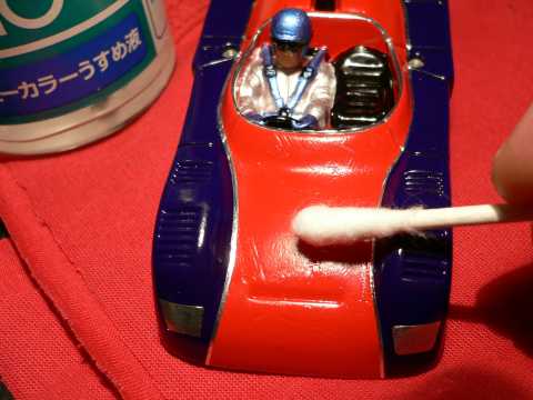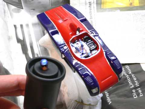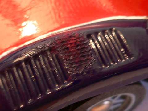 Da ich dem Lack immer zu wenig Trockenzeit gönnte, habe ich einige Riefen in der Karosserie.Mit einem in Lackverdünner getränktem Wattestäbchen reibe ich ihn wieder glatt. Vorsicht: Damit kann man den Lack auch sehr leicht stellenweise ganz abreiben. Pause: 03.11.2004 17:53 Uhr