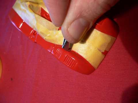 Etwa eine Stunde lasse ich die Karosserie jetzt trocknen, dann ziehe ich vorsichtig das Abklebeband ab.