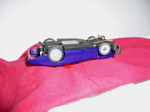 Am Karosseriehalter ist noch die Klebeknete als Fuß. Sieht nicht schön aus, gibt aber