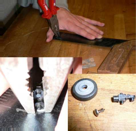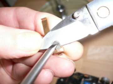 Als Hilfsmittel könnte man hier wieder das obige Blechstück mit dem breiteren Schlitz nehmen. Dabei liegt das Rad oben auf und